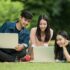Full length of cheerful university students walking on campus